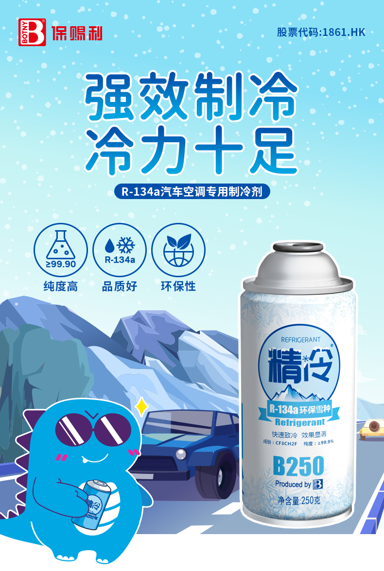 他來了!冷力十足的保賜利精冷環保雪種,帶著一股強冷空氣來襲,令車內瞬間入冬!