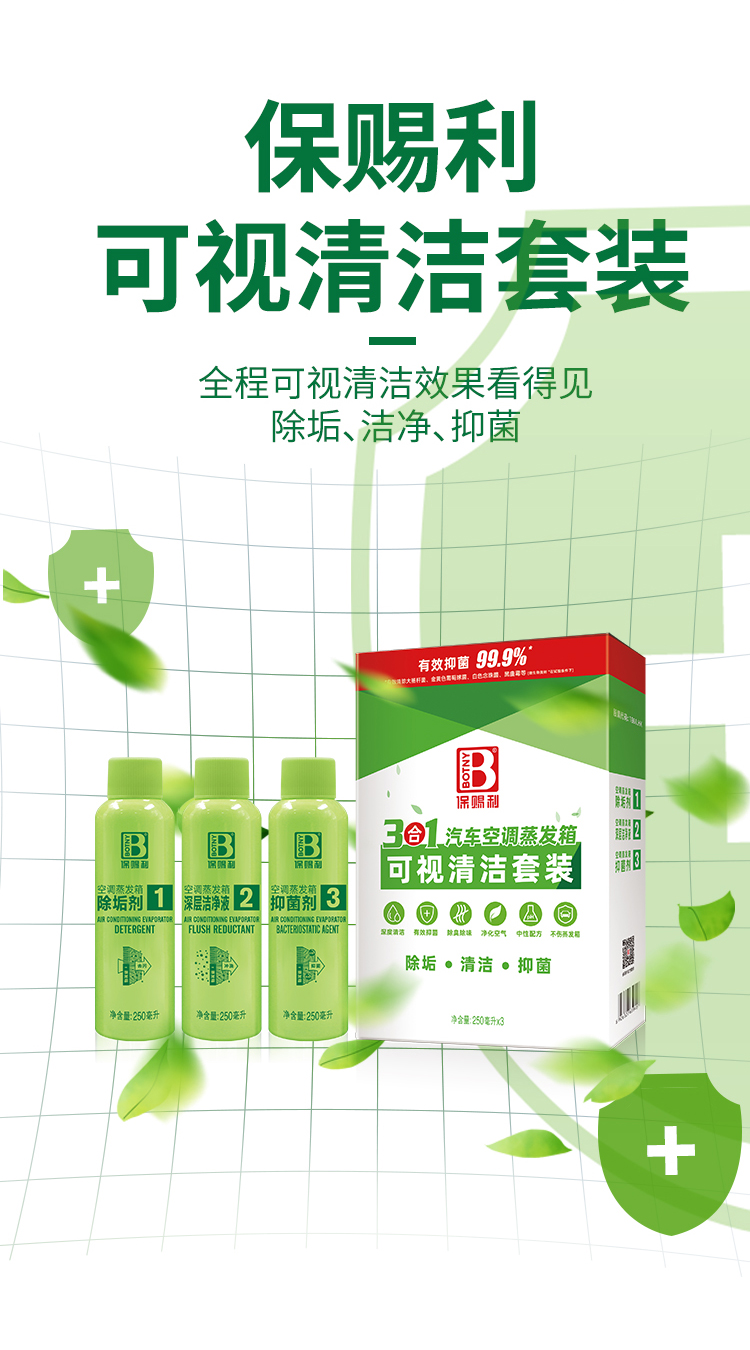 保賜利汽車空調(diào)可視清潔套裝,深度去污除異味,有效抑菌99.9%,讓健康看得見!