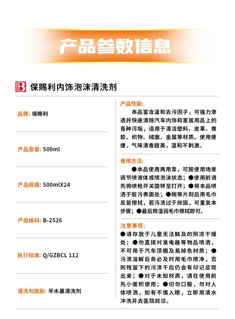 新品推薦 | 保賜利內(nèi)飾泡沫清洗劑,高效去污垢、盛夏果園香,讓內(nèi)飾煥然一新!