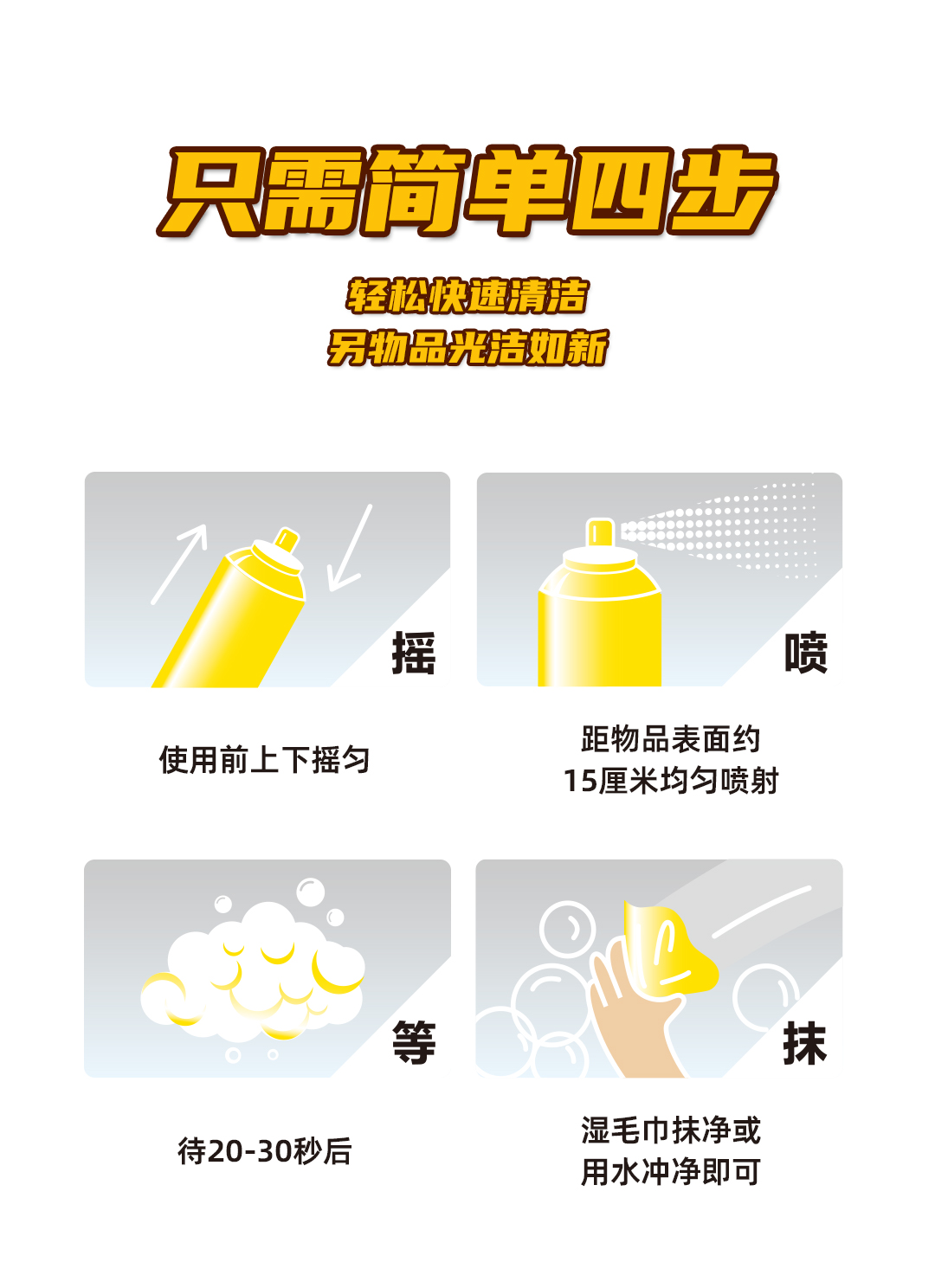 保賜利多功能泡沫清潔劑(黃鉆石)車家清潔好幫手!免水清洗,一噴一抹,輕松去除污垢!