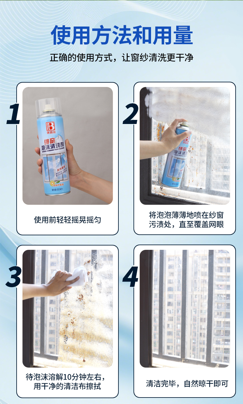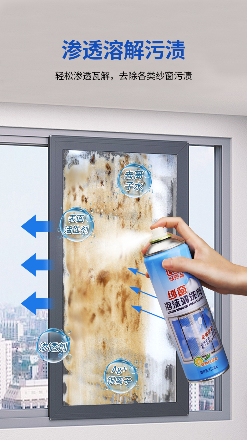 20年家政阿姨用了都說好!保賜利紗窗泡沫清洗劑,免拆免水洗,污垢自動掉下來!