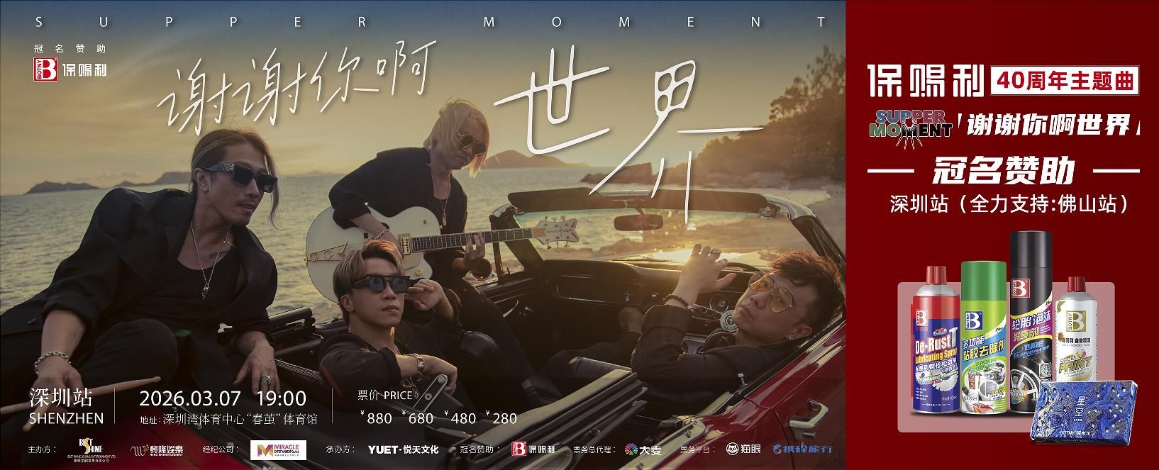 保賜利冠名贊助 Supper Moment 2026深圳演唱會,《謝謝你啊世界》為品牌40周年主題曲