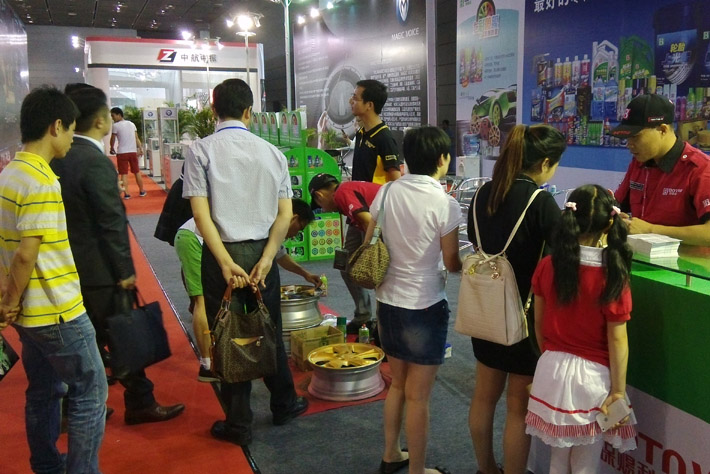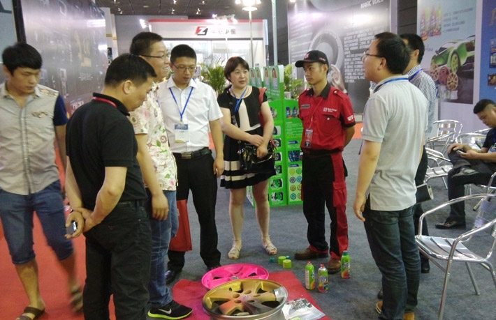 作為本屆展會的又一生力軍—車主,也在本屆展會上構成了不可或缺的角色。眾多車主在經我司工作人員介紹七彩噴膜產品功能及特性后,紛紛產生濃厚興趣,并請戰動手實操體驗,更有車主在展會期間動手實戰大眾甲殼蟲私家車—保賜利七彩噴膜輪轂改色。