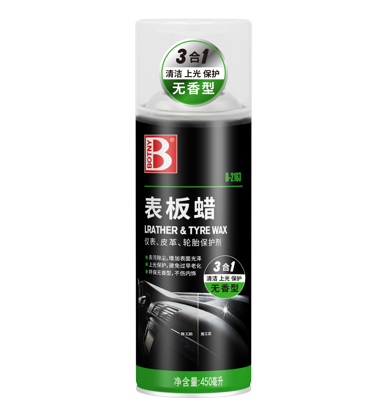 1、適用于車輛儀表板、皮革座椅、合成皮革制品等,增加表面光澤,去污除塵。