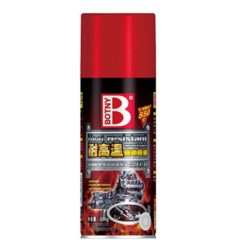 本噴漆最高耐熱溫度為550℃,噴灑處于高溫下汽車、摩托車的消音器及引擎周圍等處能防止因高溫或酸化所引起的腐蝕,具有速干性和良好密實。噴漆后約1小時,即可使用被噴飾物品,亦可使用于暖爐、煙囪、鍋爐等需要加強耐熱部位。