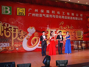 廣州保賜利化工有限公司、廣州歐亞氣霧劑與日化用品制造有限公司籌備多日的新春開年晚宴于2013年2月28日晚6點在從化南海食街拉開序幕,近兩千多人的晚宴現場顯得熱鬧非凡,充滿著激情、發布日期:2013-03-06